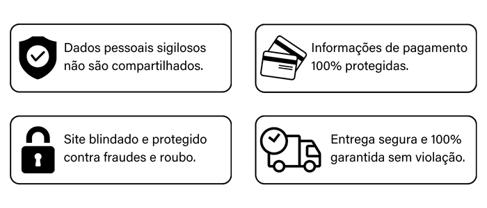 Este site é 100% protegido contra recursos de má intenção. Suas informações pessoais são totalmente sigilosas segundo a nossa Política de Privacidade e a entrega é garantida.